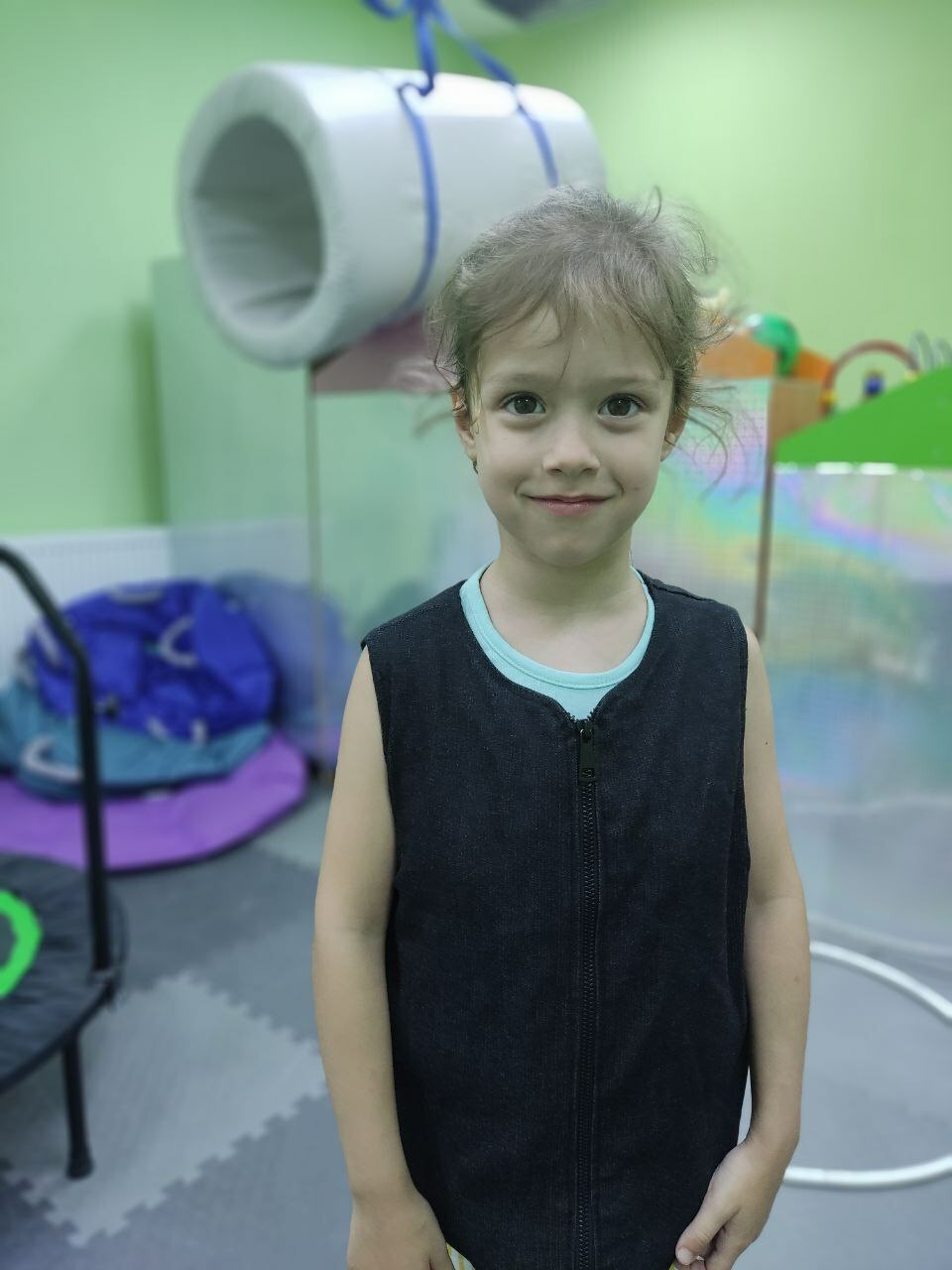 Развивающие занятия для сенсорной интеграции проходят в зале со специальным оборудованием. Качели, гамаки, балансиры, утяжеленные одеяла и мячи, разнообразное оборудование для сенсорной стимуляции. Занятия для детей проходят в игровой форме. Они направлены на гармонизацию сенсорных процессов у ребенка, моторное развитие, владение своим телом, эмоциональную саморегуляцию, планирование своего поведения.